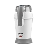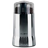 Features: Great for making flavored coffees. Easily grinds enough coffee beans for a 12 cup serving. Large transfer lid to help avoid spillage of fresh coffee grinds. Round shaped grinding chamber for completed grinding of the coffee beans. Convenient deep lid lets you transfer freshly ground coffee directly into your brewer. A complete grinding instruction booklet with a coffee measurement chart is also included. Carefully designed safety switch protects you by preventing operation unless the lid is properly in place.
